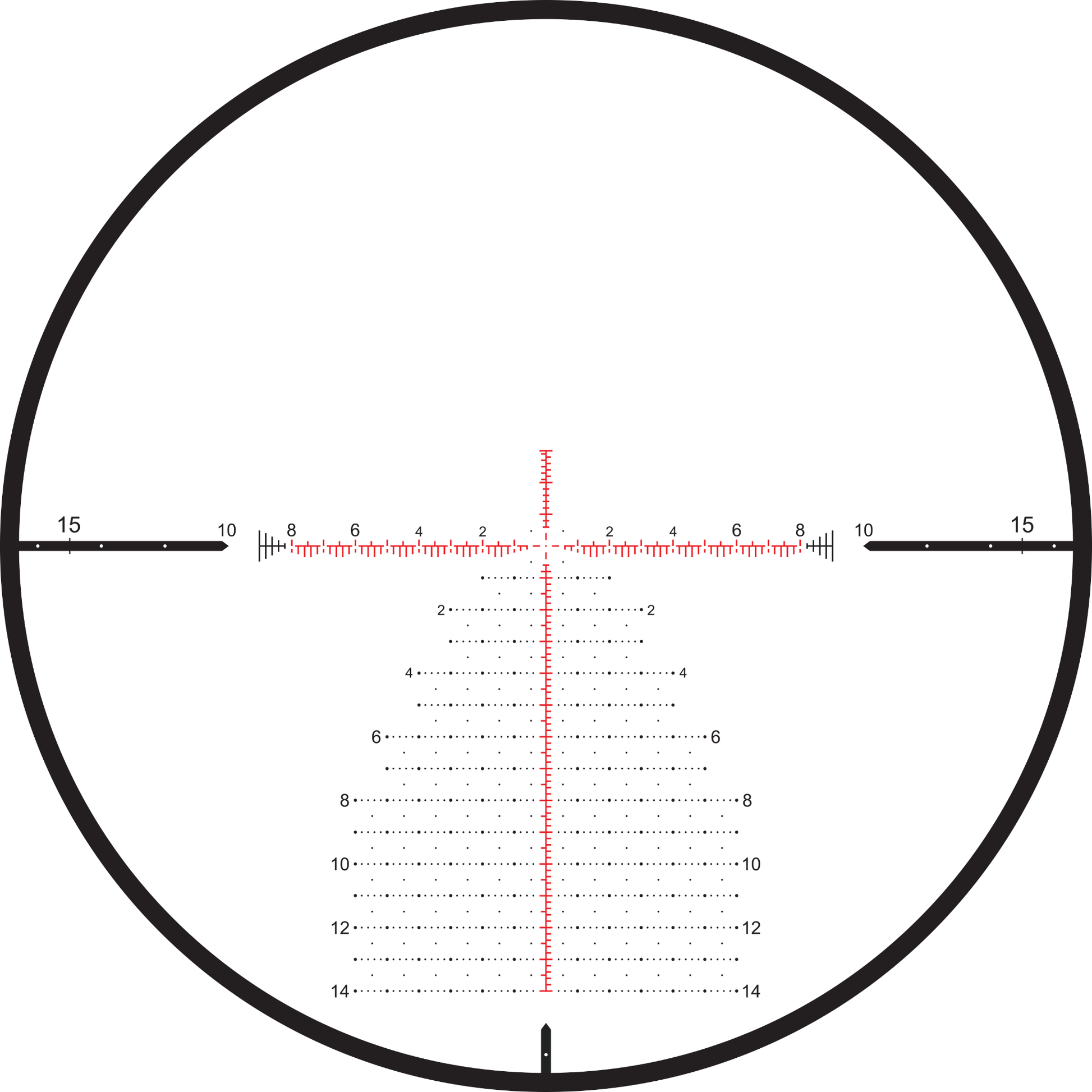 The First Focal Plane (FFP) FAR2 reticle allows precise ranging and holdovers at any magnification. Designed around MRAD competition standards, both turrets and reticle are optimized for long-range precision shooting.